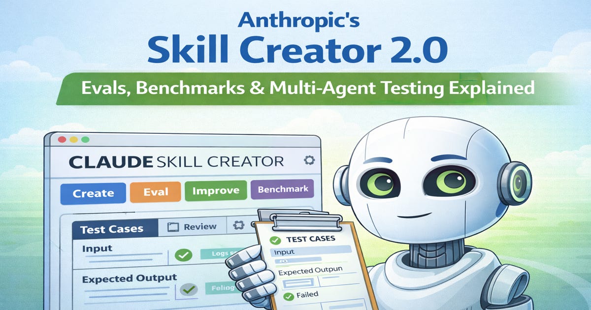 Learn how Anthropic’s Skill Creator 2.0 helps developers build reliable AI skills using evals, benchmarking, and multi-agent testing. A practical guide to creating, testing, and improving Claude skill