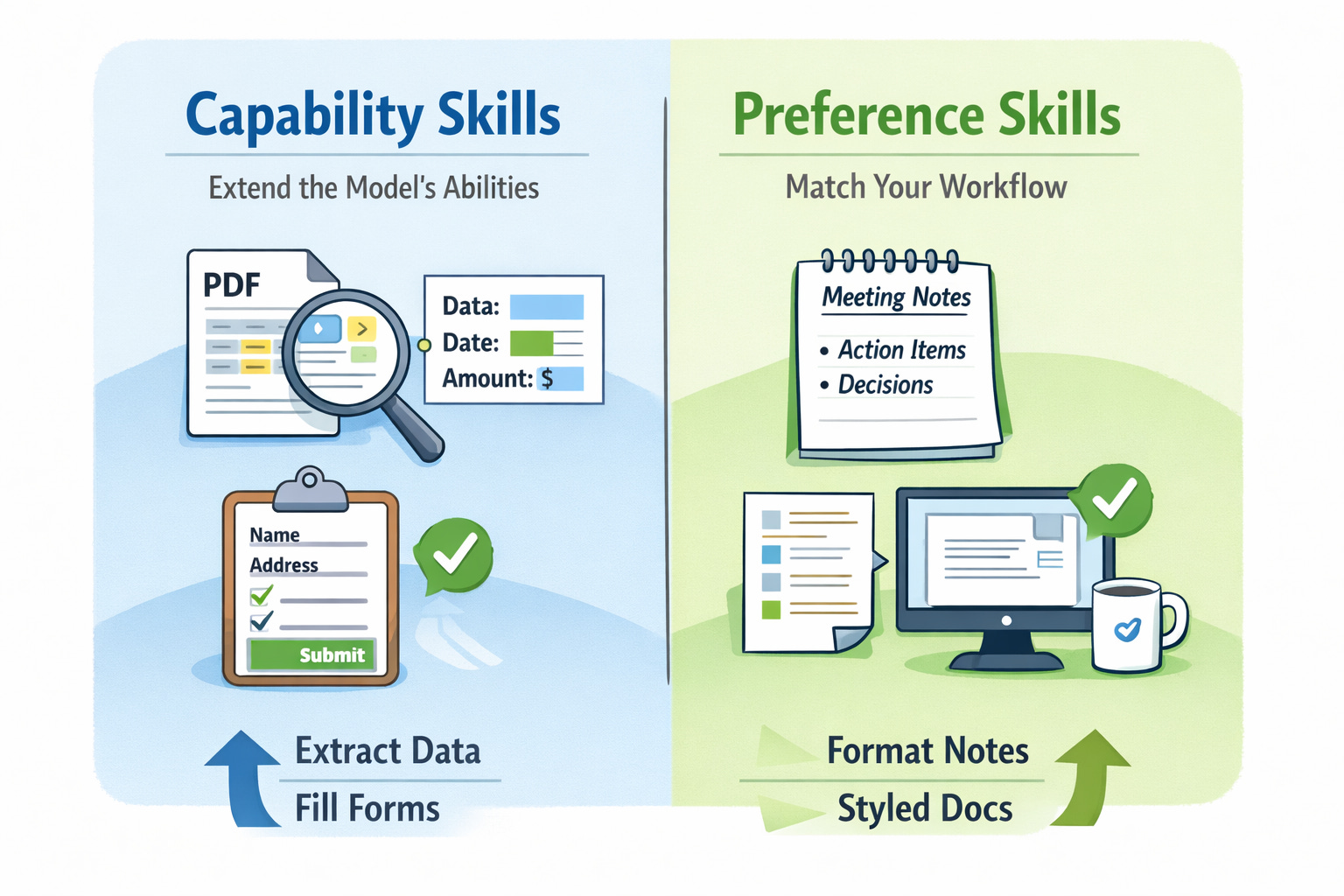 If a capability skill becomes unnecessary because the base model improves, the tests will reveal it. If a preference skill stops behaving the way you expect, the benchmarks will catch it.