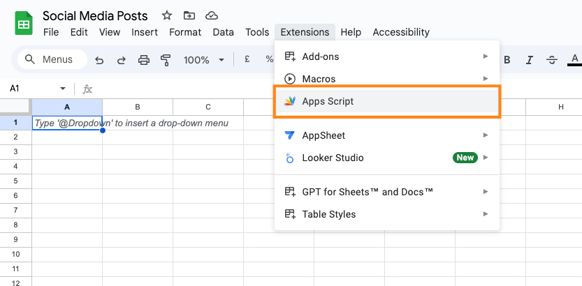 Step 6: Go to Google sheets and you will see the Extension “Social Media Generator”