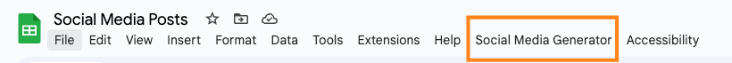 Go to Google Sheets and you will see the Extension “Social Media Generator”