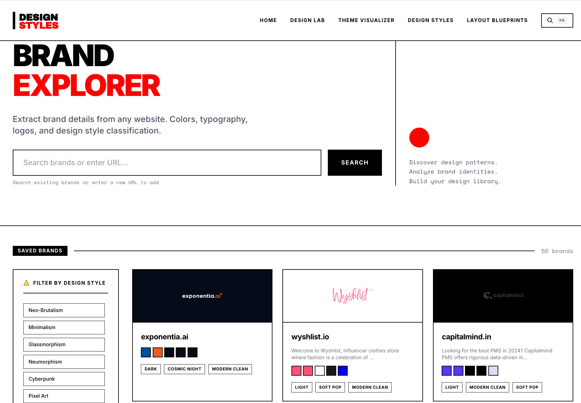 I needed a better way. Something that could look at any website and hand me the recipe. That was the birth of “ designstyles.xyz”