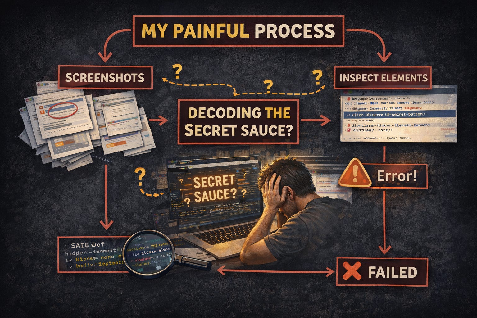 My process was painful — screenshots, inspecting elements, trying to decode the “secret sauce.”