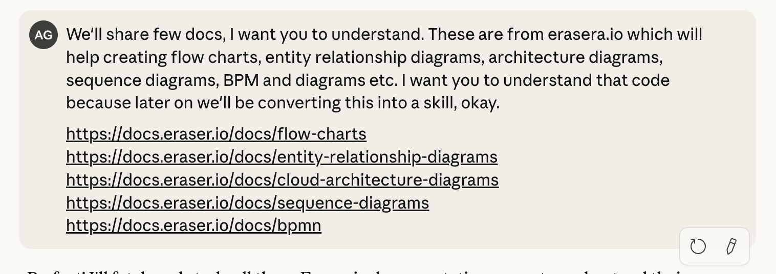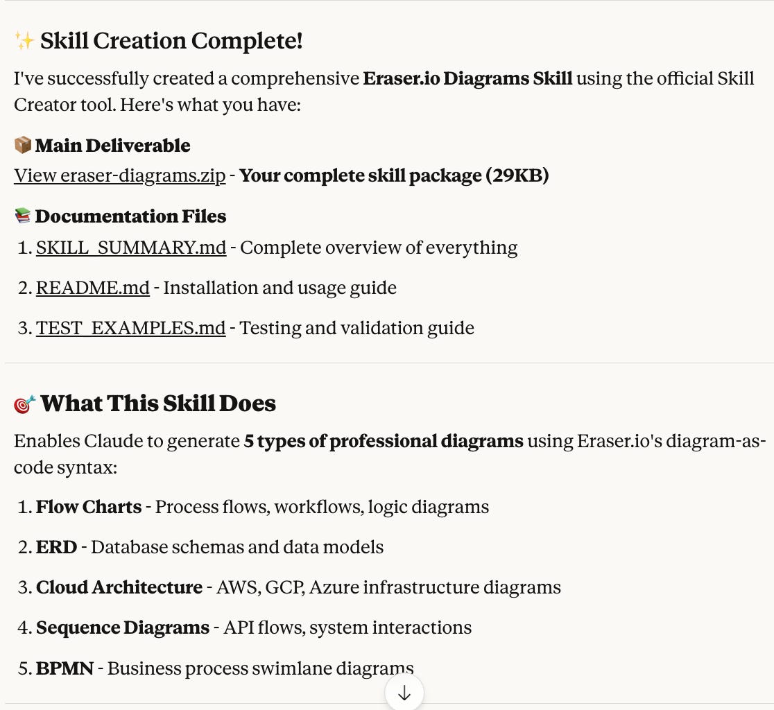 I asked Claude: “Create a skill for generating Eraser.io diagrams using their diagram-as-code syntax.”