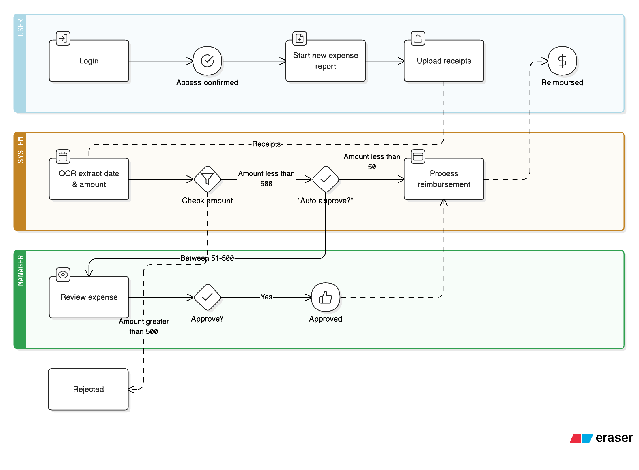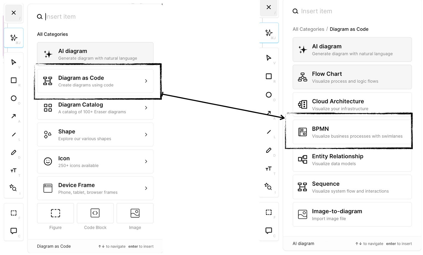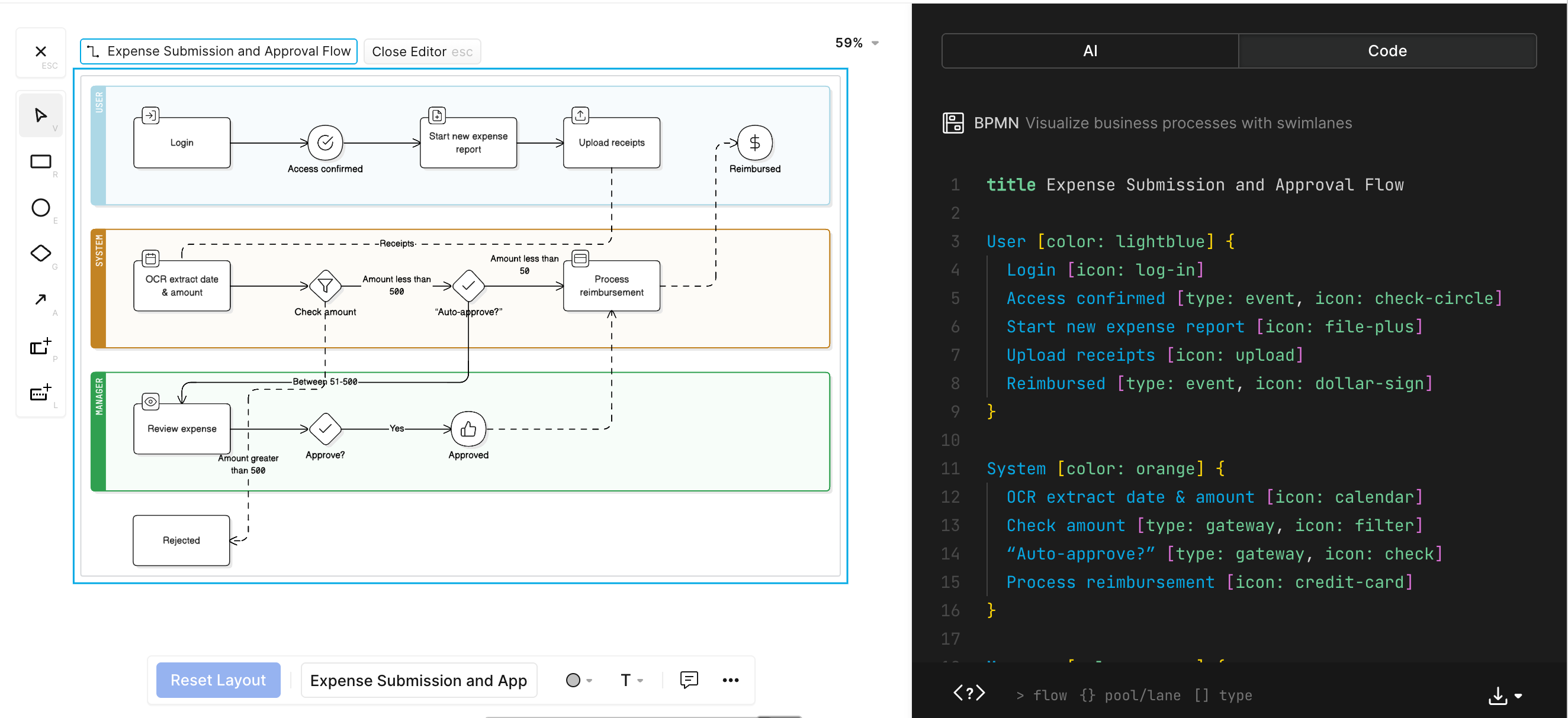 The Problem: I needed to create professional BPMN diagrams for process documentation, but Eraser.io’s diagram-as-code syntax has specific rules, special character restrictions, and five different diagram types to remember.