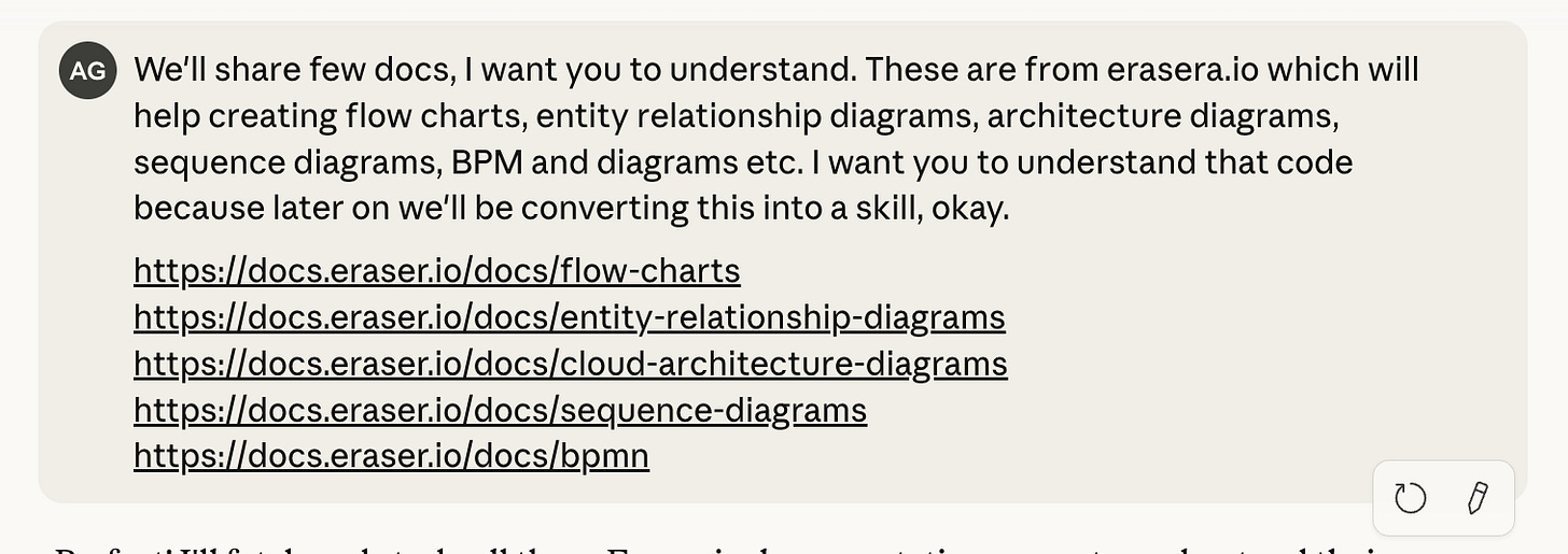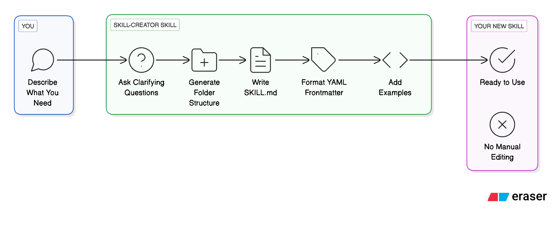 The Solution: Build a skill that teaches Claude the entire Eraser.io syntax so I never have to look up documentation again.