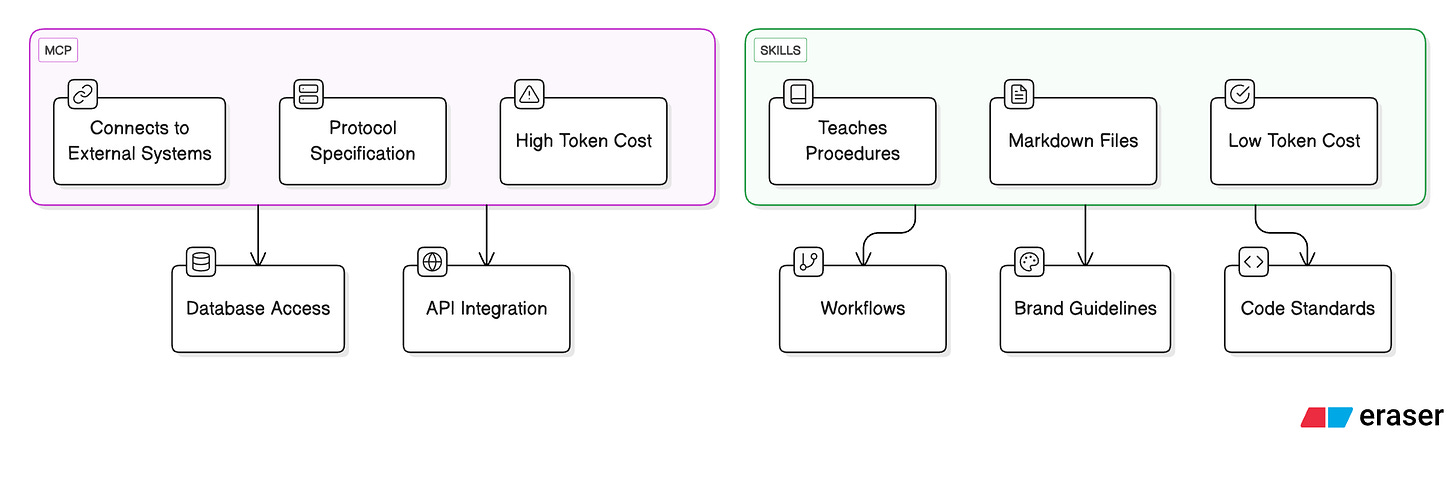 Let me clear this up quickly because people keep asking: Skills aren’t replacing MCP. They solve different problems.