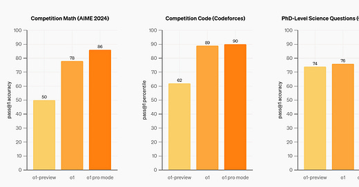 Superhuman Problem Solving: The o1 pro mode isn't just another chatbot - it's like having a genius assistant who can think longer and harder about tough problems. Let's look at the hard data: