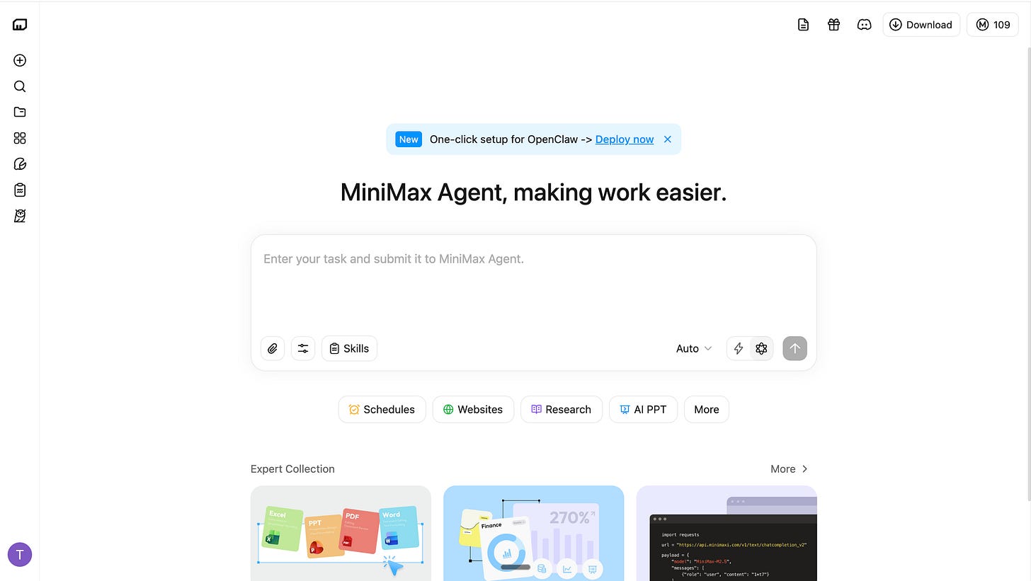 MaxClaw (MiniMax) is MiniMax’s proprietary version of OpenClaw, built directly into their agent ecosystem. It focuses on reliability and includes expert skills for batch processing, terminal execution, and persistent memory management.